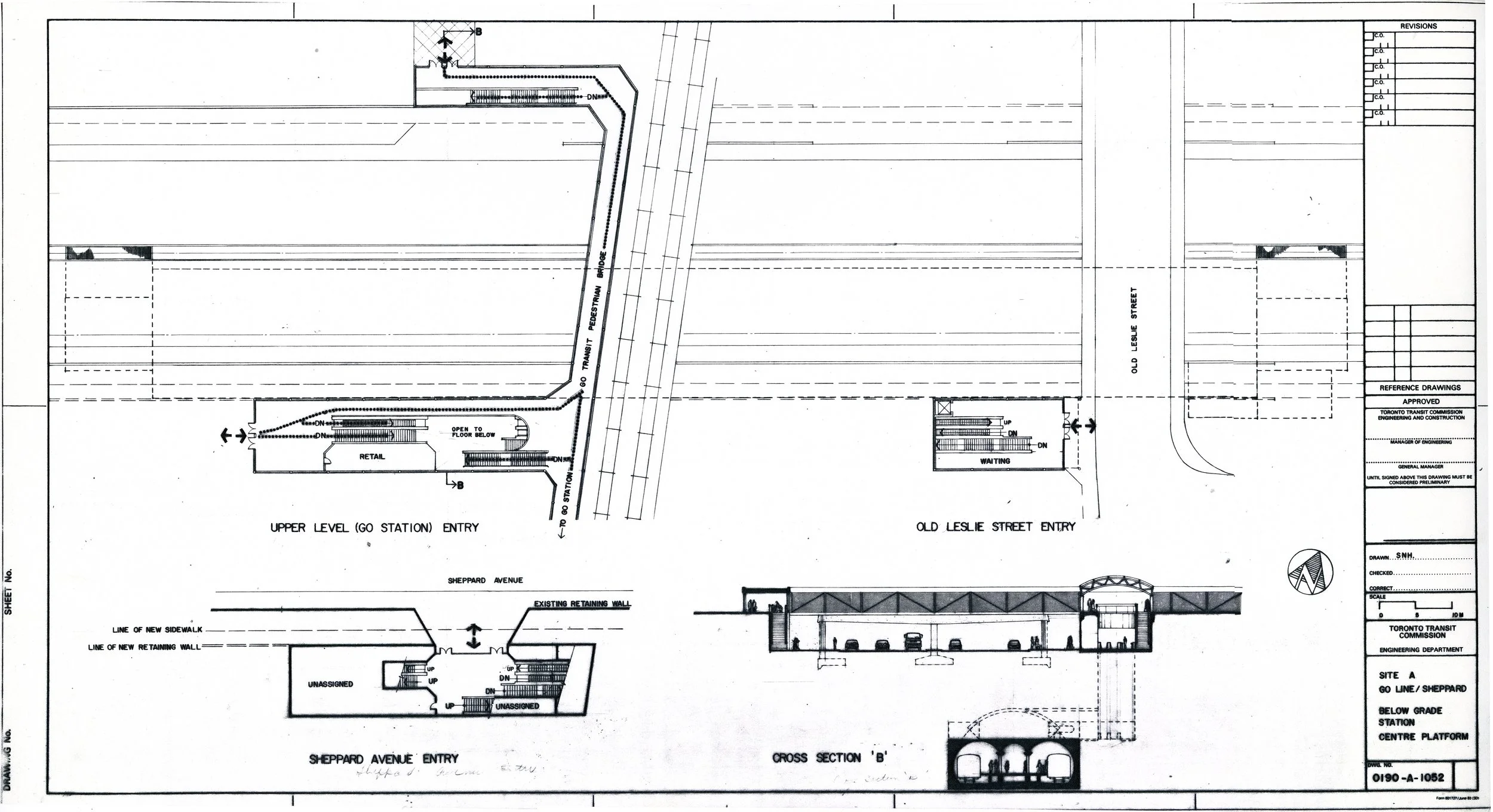 The Don River waterway and and the Leslie Street and Sheppard Avenue Intersection, with overpass structure, needed to remain intact. The vertical distance from Street Level to Platform Level was the important aspect to consider in all options.