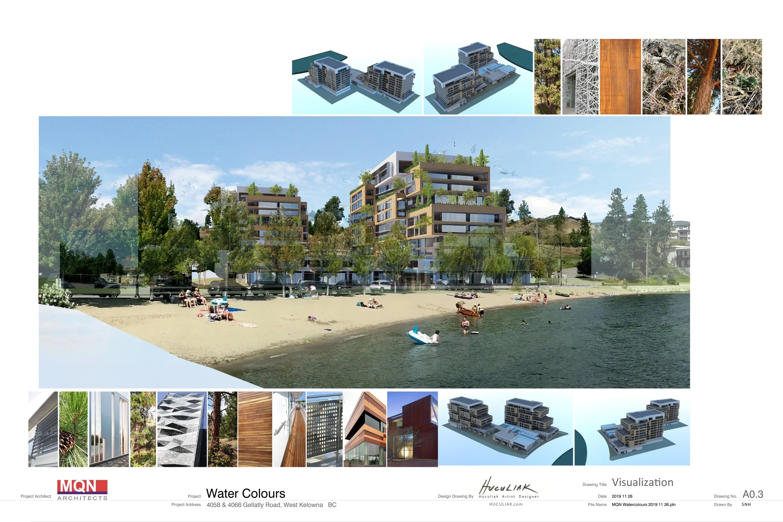 Located in West Kelowna’s prominent beach neighbourhood 4058 & 4066 Gellatly Road will provide up to 250 residential units and 10-20 commercial spaces in a varied mixed use property.