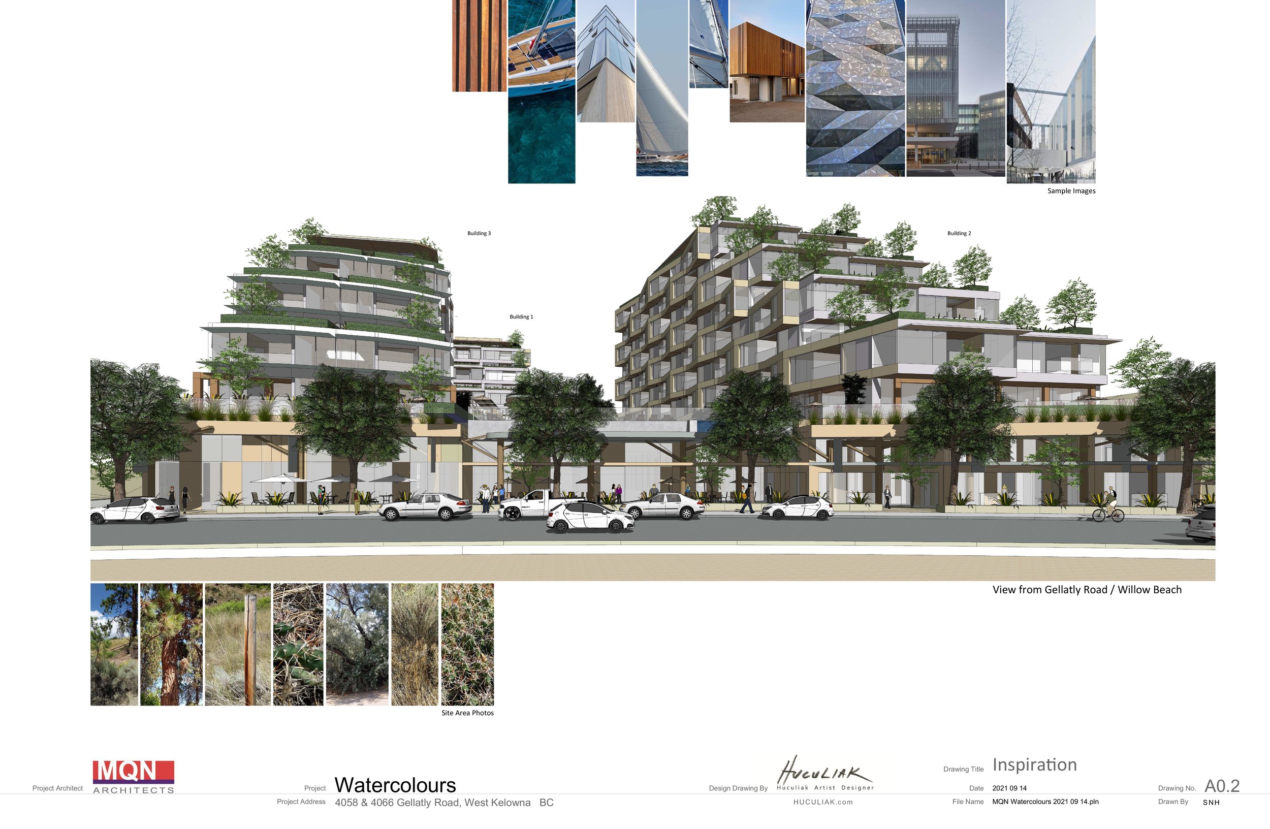 The design intent here embraces West Kelowna's OCP of a waterfront village setting it apart from the rural residential and Hwy aspects of the area.